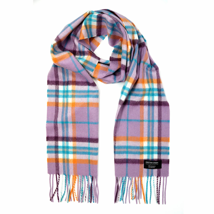 This 100% Cashmere Scarf in the a lovely lilac and turquoise check is so soft against your skin, a real delight to wear! Part of our exclusive Gretna Green Cashmere Collection, it makes the perfect gift from your trip to Scotland Our Cashmere Scarves are made from the finest cashmere fibres available and hand finished with natural teezles set by hand, they are part of our exclusive Gretna Green Cashmere Collection. This Lilac and Turquoise Check Cashmere Scarf is superb value for money and would make a lovely gift from Scotland. We also have Mens and Ladies 2 ply Cashmere sweaters as part of our Gretna Green Cashmere Collection, we believe they are made from the best quality cashmere in the UK. Go on have a look!
